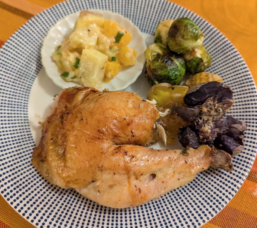 Cut thighs, wings, etc. The chicken was well made this year, tender and juicy.