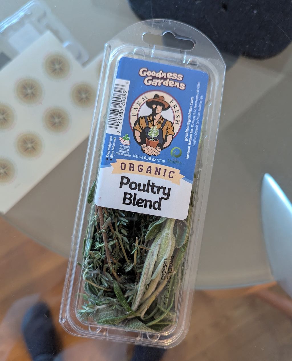 On December 23rd or 24th, thyme and rosemary are in demand and tend to disappear from grocery stores. Last year, I looked for 3-4 grocers before I found rosemary. This year, I wasn’t able to find thyme, so I gave it a shot with this herb blend. The blend has mainly thyme, and a twig of rosemary and sage each. How convenient! I might want more rosemary, though.