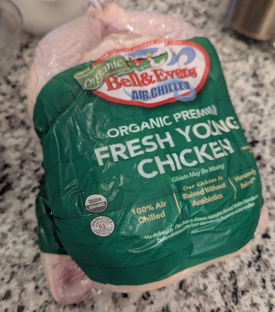 This year, I bought an organic whole chicken (4.2 lbs) at a nearby Whole Foods market at $19.