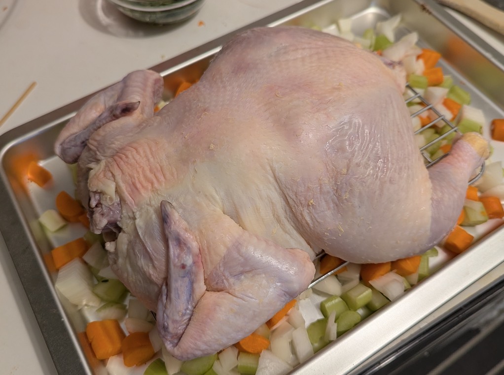 Every year on Christmas eve, I roast a whole chicken. Though an uncooked whole chicken alone is more expensive than a fully cooked whole rotisserie chicken sold at a grocery store, cost isn’t important on Christmas. Besides, it (usually) tastes much better if you roast one yourself.