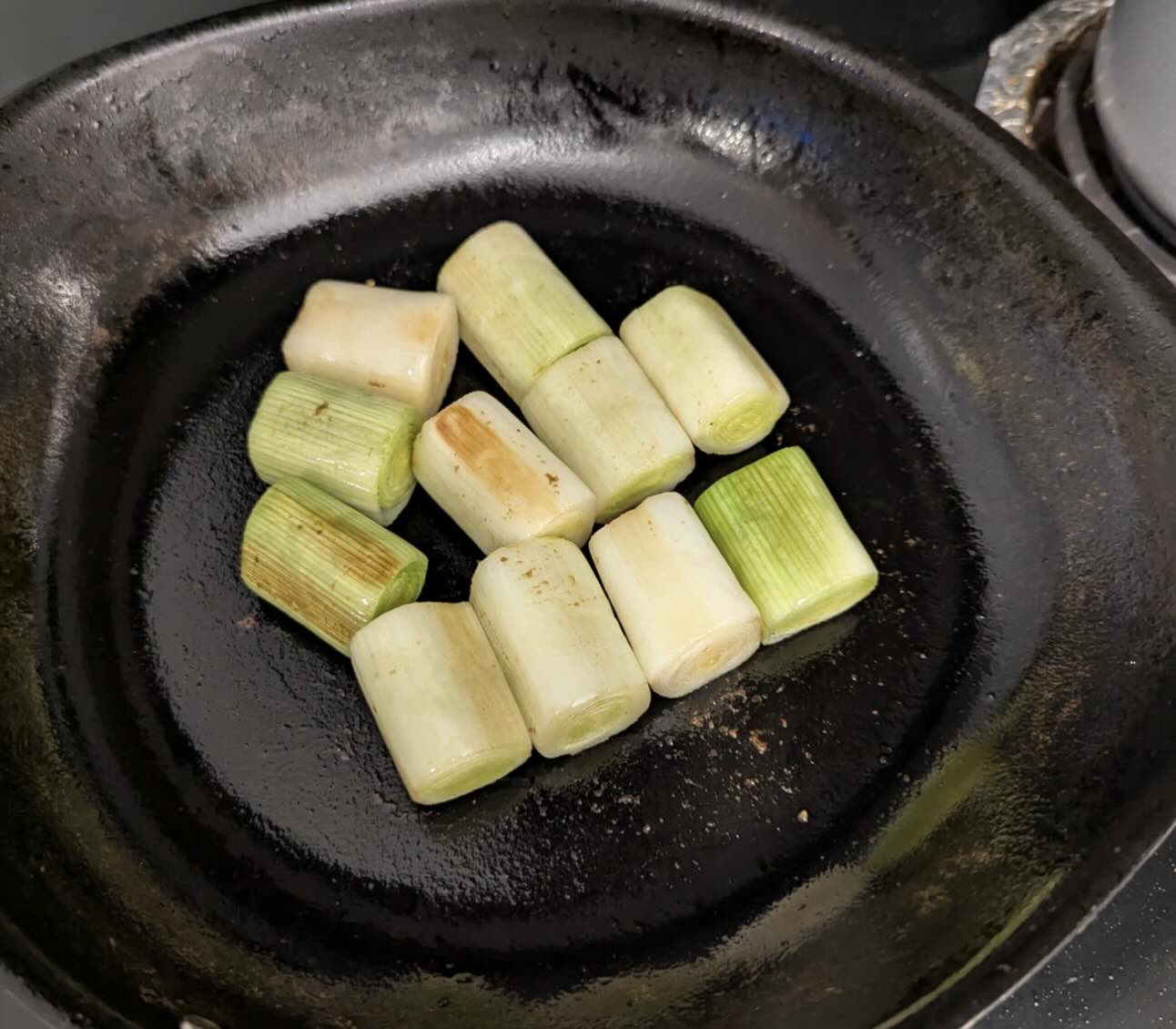 While it’s being cooked, I pan-fried leek over low heat for 30-40 minutes.